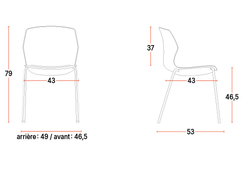 - Fonctionnalité : Chaise empilable (jusqu’à 10) sans accoudoirs pour une meilleure mobilité.