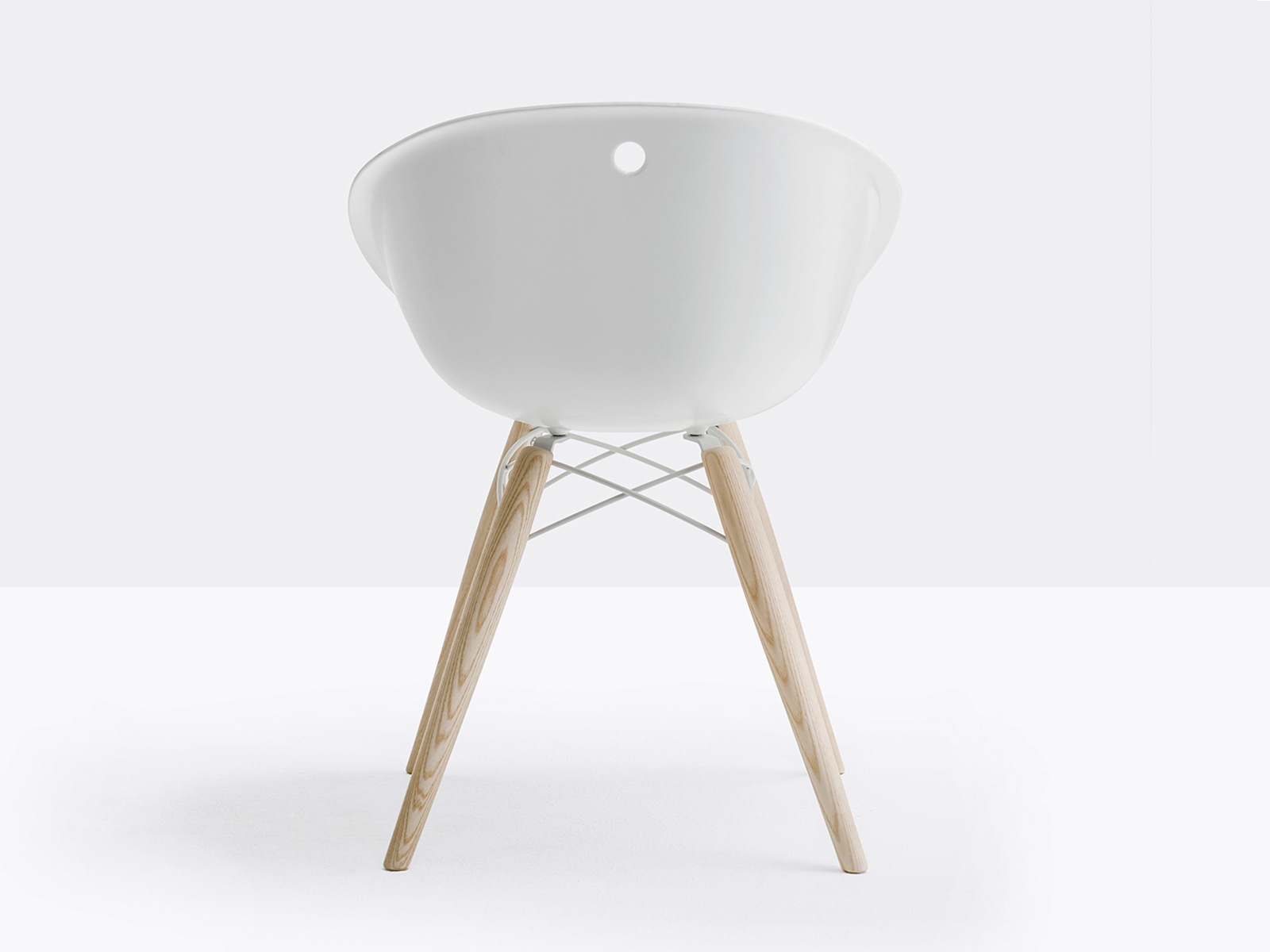 technopolymère enveloppe le corps tandis que les pieds en frêne massif apportent robustesse et chaleur. Sa forme sinueuse s’intègre facilement dans tout type d’intérieur : espaces d’accueil, bureaux, cafés, hôtels ou restaurants. Pensée dans le souci du détail, la chaise Gliss intègre dans sa coque un petit trou qui facilite la préhension et le déplacement par le dossier. Pedrali conçoit son mobilier dans le respect des normes professionnelles