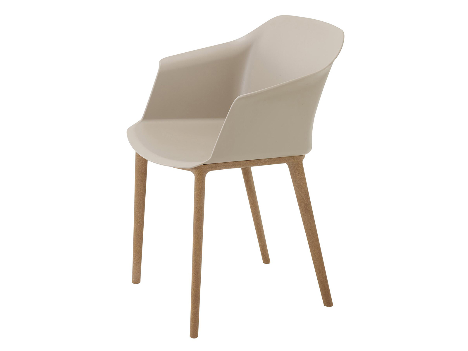 dossier souple et des accoudoirs pour reposer les avant-bras. Cette dernière est proposée en 3 coloris : taupe, noir ou blanc. Le piètement est également en polypropylène, composé en partie de