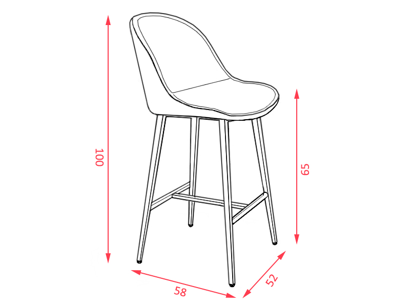 Sonny a un encombrement de 52 cm de large et 58 cm de profondeur. La chaise H65 mesure 100 cm de hauteur et son assise est à 65 cm. La chaise H75 mesure 110 cm de hauteur et son assise est à 75 cm.