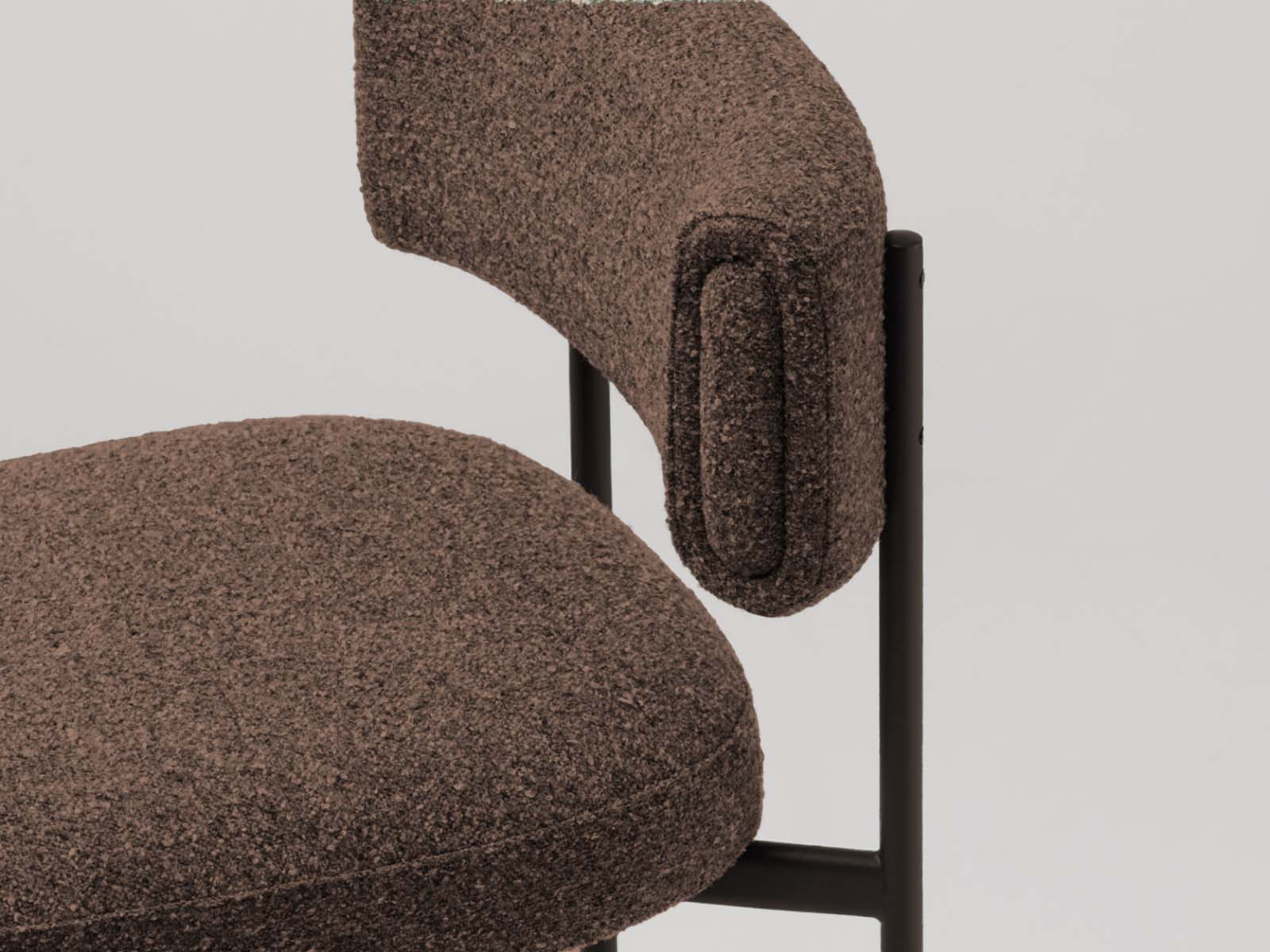 Le tissu Fenix Wool sélectionné pour cette chaise haute offre une résistance au feu de classe M1.