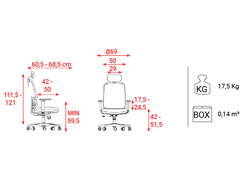 L’assise est rembourrée avec une mousse à haute densité (45~65 kg/m³), offrant un confort durable. Les accoudoirs réglables en hauteur avec revêtement soft touch en polyuréthane permettent de s'adapter à chaque utilisateur.