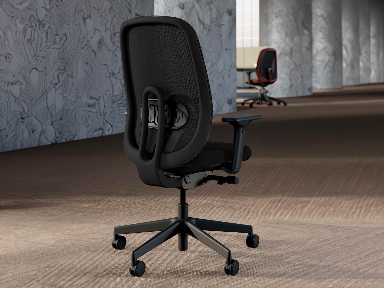 Doté d’un mécanisme synchrone autorégulé permettant une adaptation de l'inclinaison du dossier en fonction du poids de son utilisateur, le siège permet un ajustement qui s'adapte au plus grand nombre sans efforts. Le siège est également équipé d'accoudoirs 4D pour un ajuster