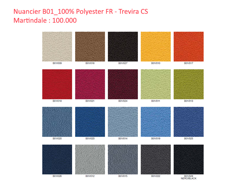 Il est possible de commander Fabrica Soft avec pied en aluminium brillant, sans roulettes, avec dossier en résille, en version fauteuil de direction et siège de réunion. N'hésitez pas à nous consulter pour les nuances et versions disponibles.
