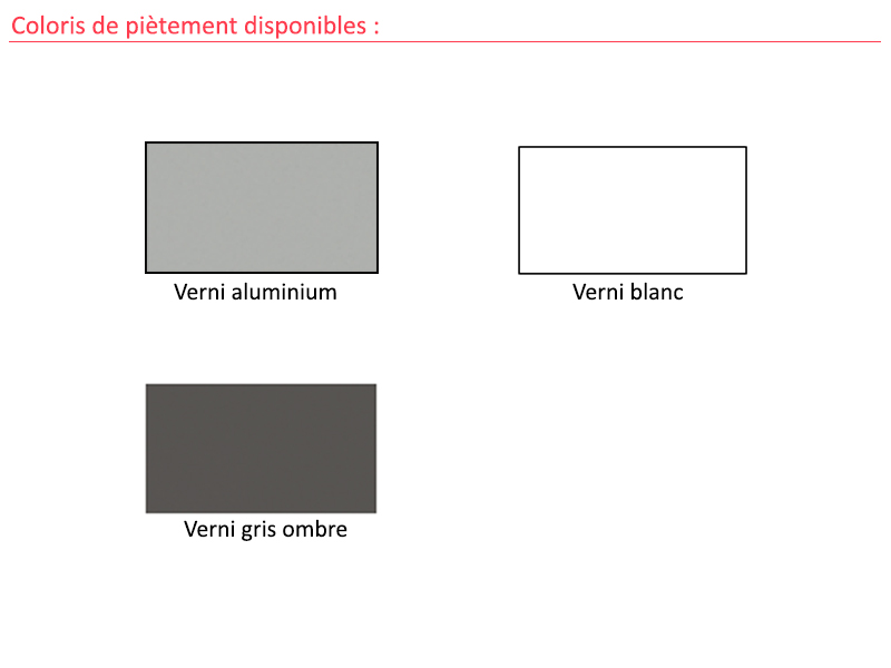 Le pied est disponible également en verni blanc ou gris ombre. Les roulettes existent en standard noir, blanc, noir/argent et en version anneau argent.
