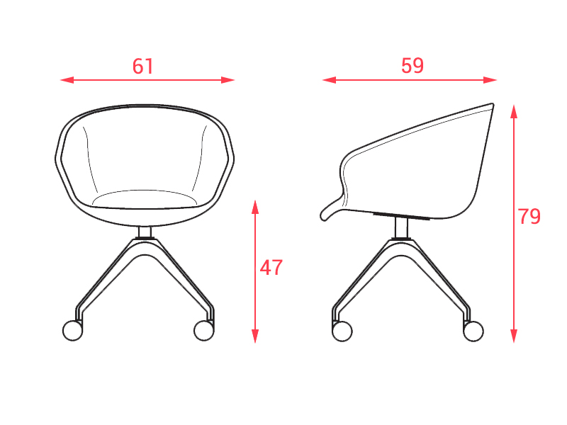 Cover a un encombrement de 61 cm de large, 59 cm de profondeur et 79 cm de hauteur. Son assise est à 47 cm du sol.