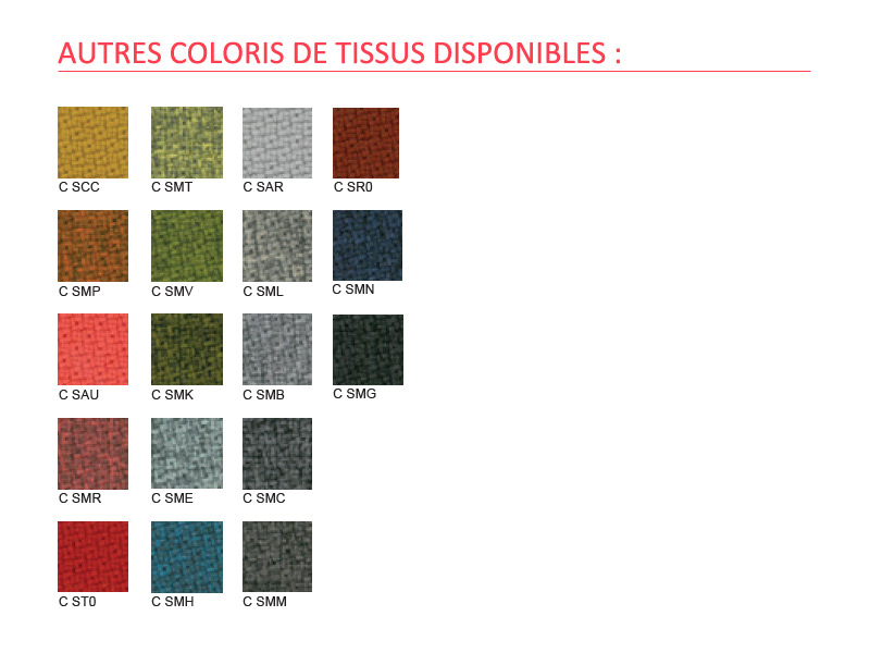 La version proposée ici dispose d'une assise et d'un dossier tapissés avec un tissu de grande qualité (voir caractéristiques ci-dessous) disponible en 18 coloris différents.