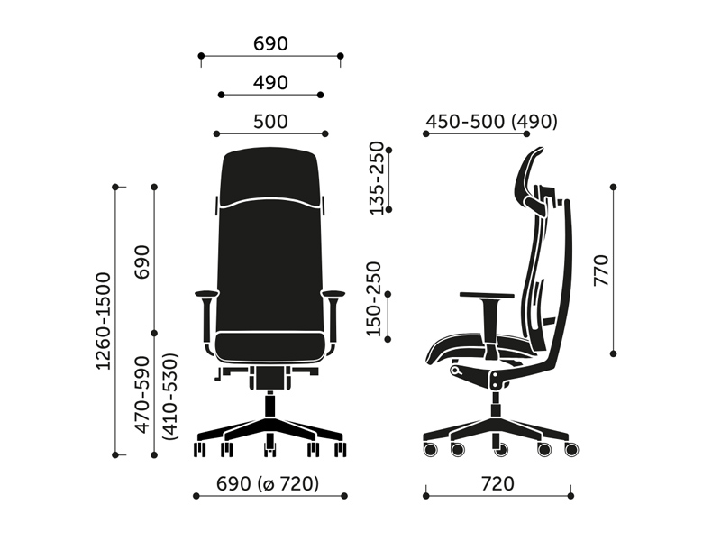 La hauteur de son dossier et la largeur de son assise font du siège Action un modèle adapté aux grands gabarits. Il est conçu pour
