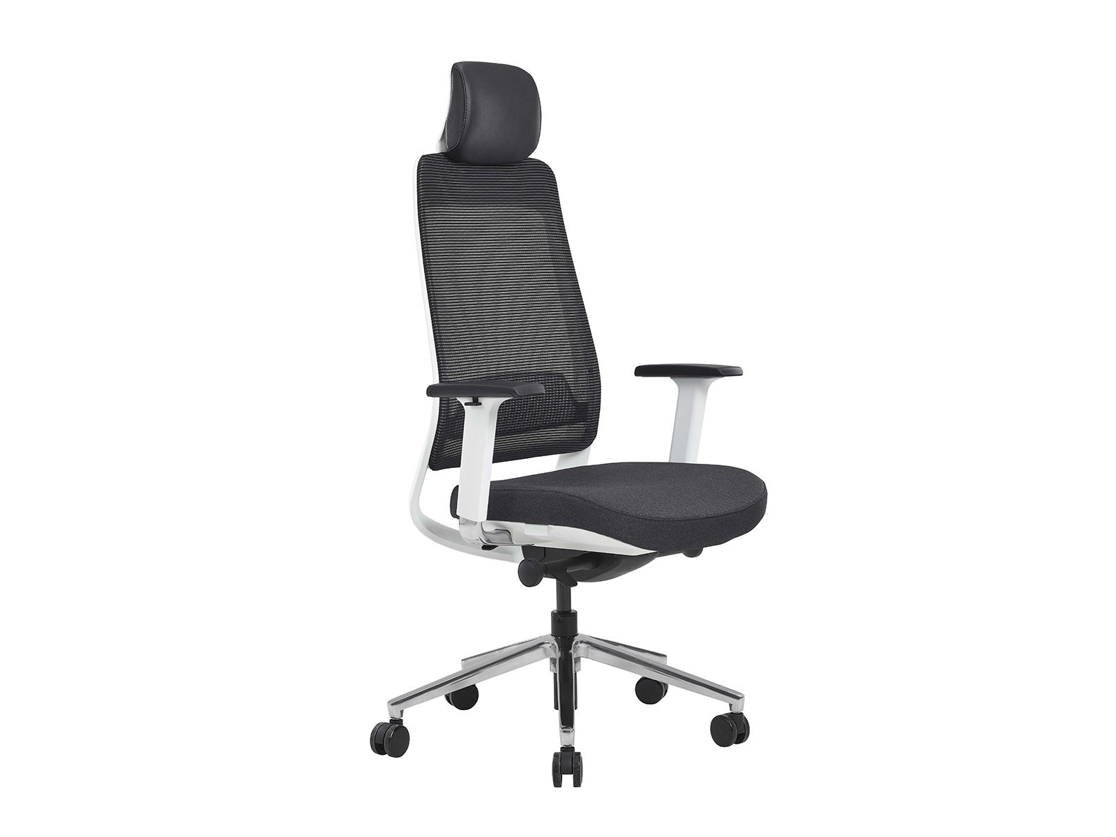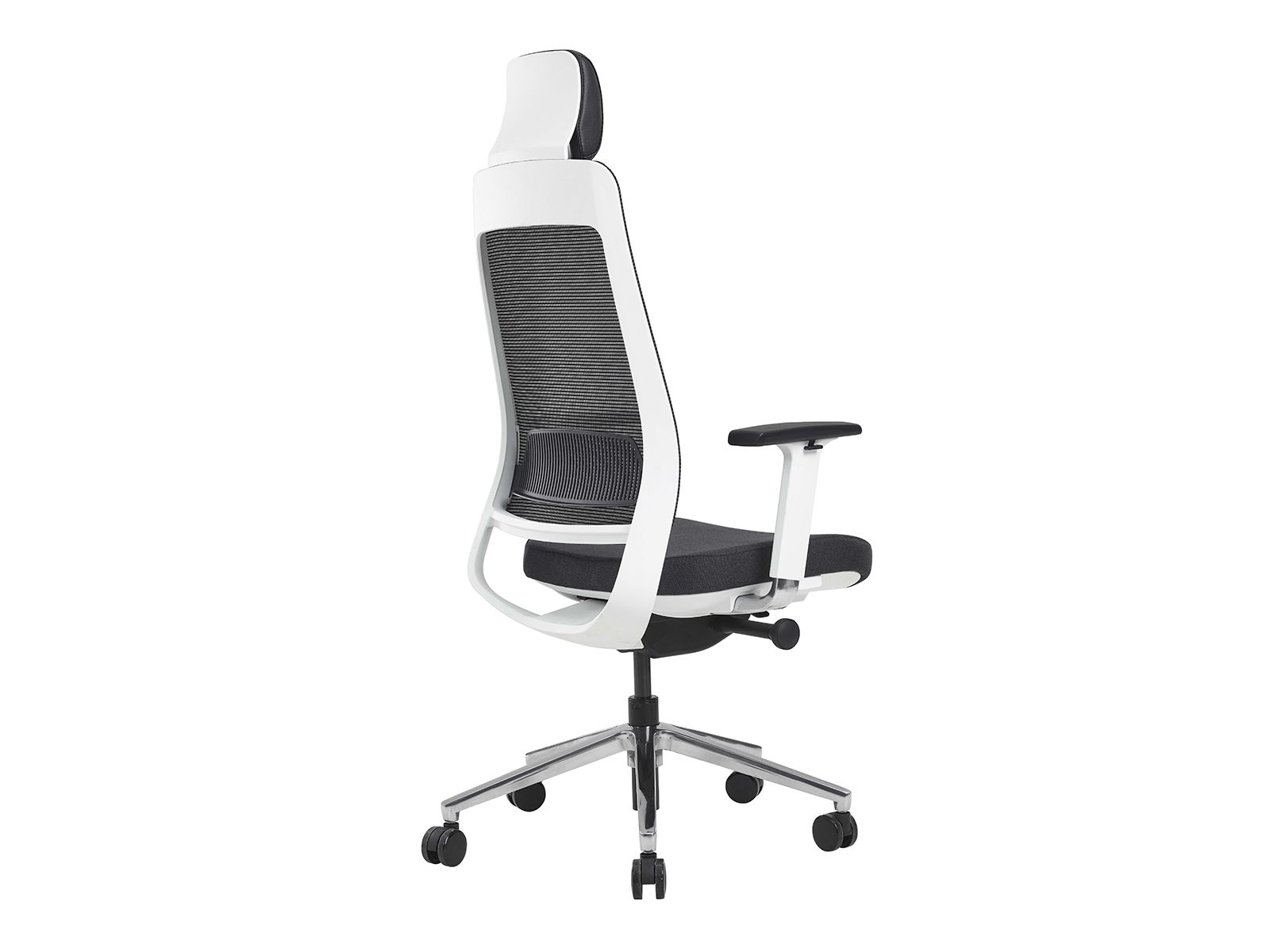 Trooper est un siège de bureau ergonomique et esthétique grâce à son cadre blanc, son piètement en aluminium poli, sa têtière imitation cuir et son dossier en résille noir. Il a tout le confort que nécessite une longue journée de travail en position assise : mécanisme synchrone avec translation d'assise, blocable 7 positions avec système anti-retour du dossier pour éviter les chocs au niveau de la colonne vertébrale, dossier réglable en intensité selon le poids de l’utilisateur par manivelle, accoudoirs réglables 4D avec manchettes "soft touch" et soutien lombaire réglable.