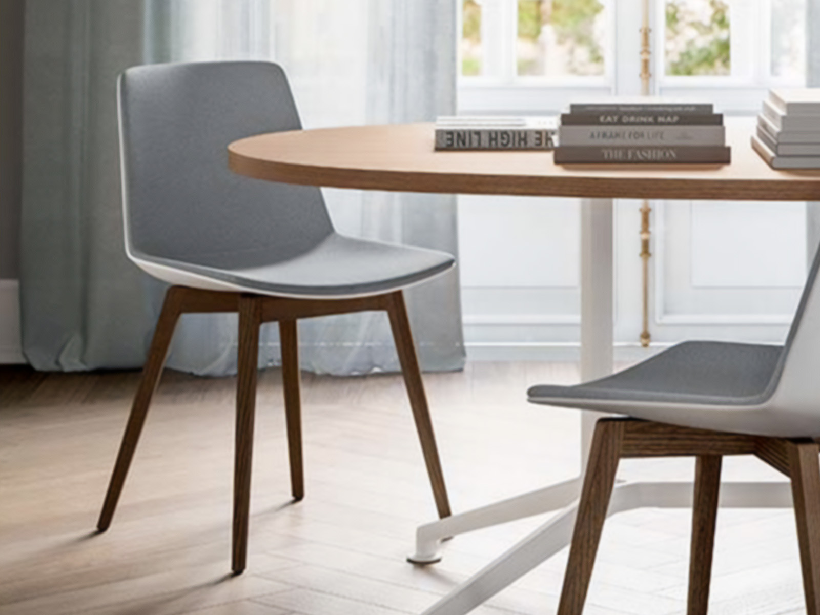 Origami Legno se présente sous des lignes brutes et des matériaux de qualité. La coque en polypropylène enveloppe le dos, le revêtement en tissu apporte du confort et son pied en bois massif donne un aspect cossu à la chaise.