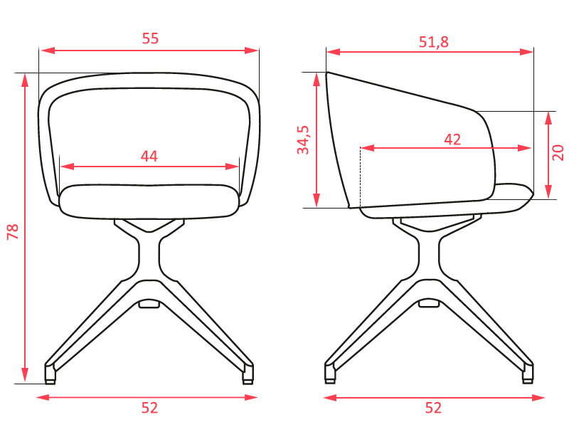 Grace a un encombrement de 55 cm de largeur, 52 cm de profondeur et 78 cm de hauteur. L'assise est à 49 cm du sol. Elle n'est pas réglable en hauteur.