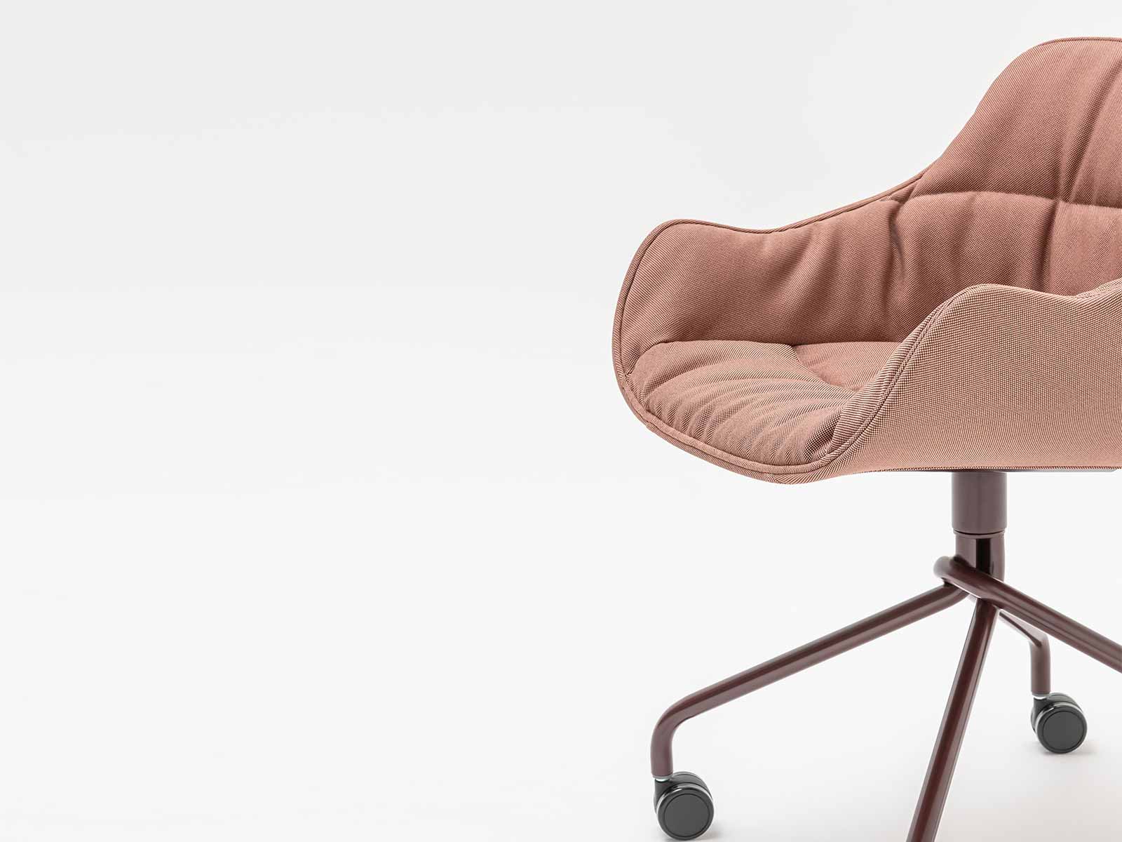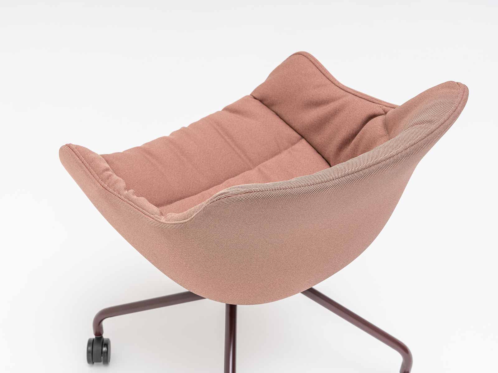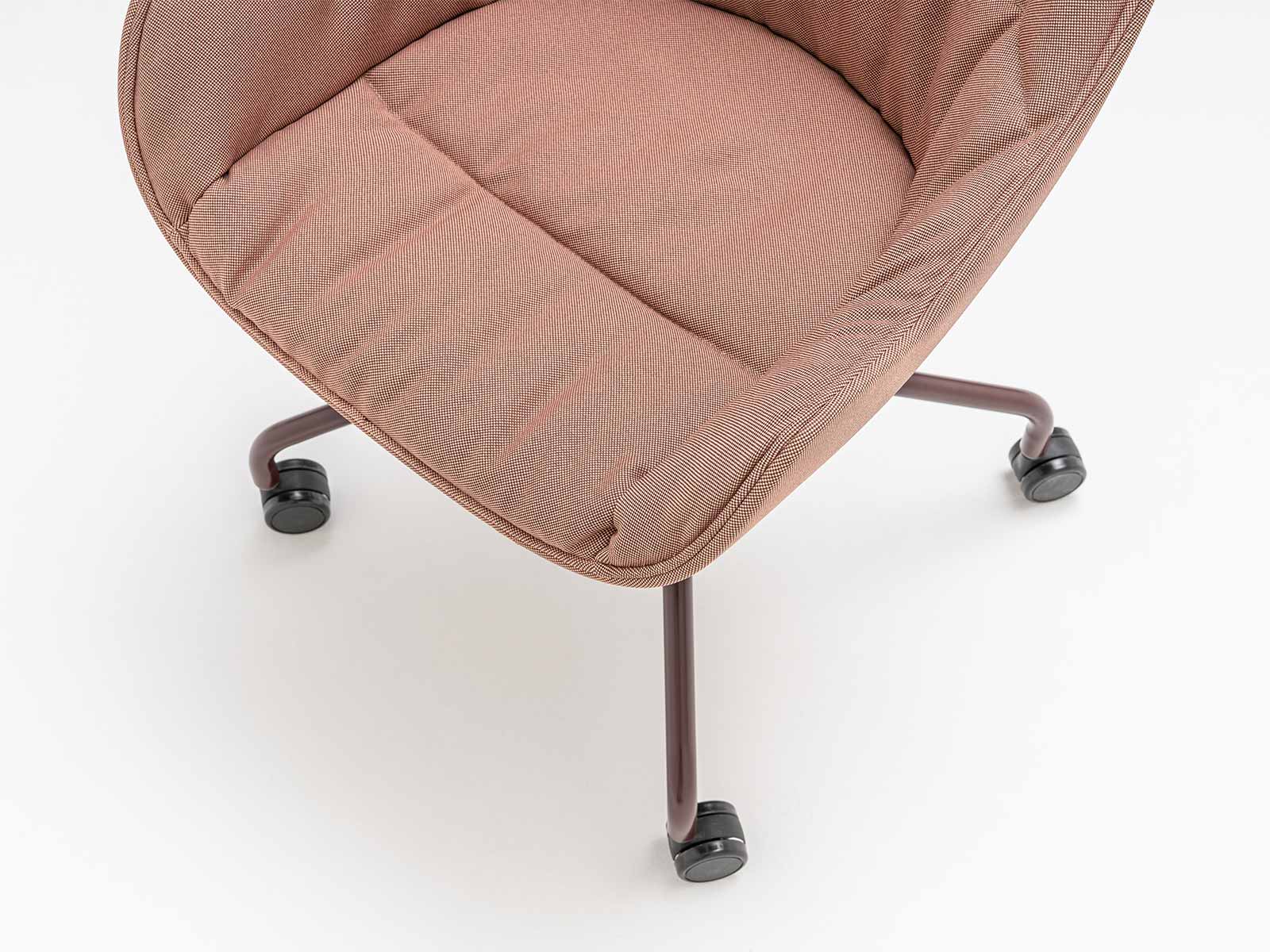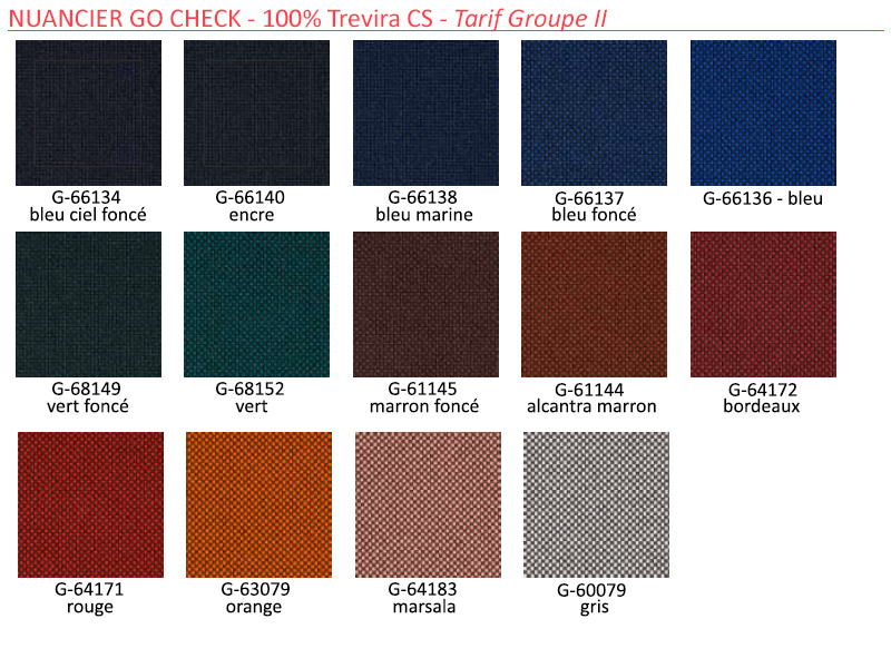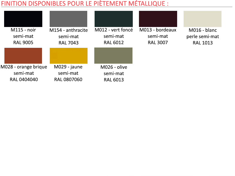 le modèle présenté sur la photo dispose d'un piètement Bordeaux RAL3007 et d'un tissu coloris Marsala G-64183