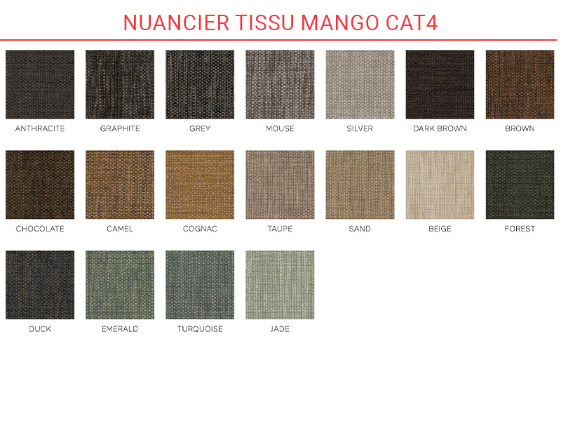 4 pieds pyramidaux en métal, avec finition époxy, est disponible en plusieurs coloris, pour une adaptation parfaite à chaque espace. Le fil de couture soigneusement assorti au revêtement crée