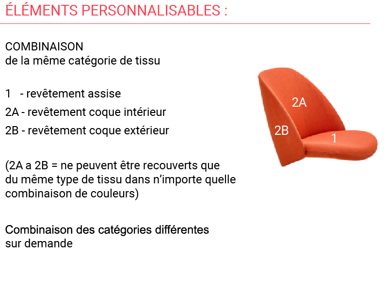 L'un des principaux avantages de ce fauteuil réside dans sa capacité de personnalisation. Bien que le configurateur propose le tissu Era de Camira, il est également possible de choisir une version bicolore avec d'autres revêtements disponibles dans les nuanciers du fabricant. Différents styles de piètements peuvent également être proposés pour répondre à vos besoins spécifiques.