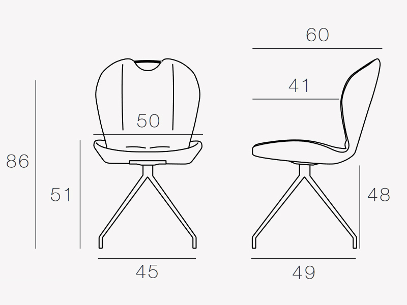 rembourrage en mousse d'une densité de 25 kg/m3 et d'un revêtement en tissu 100% Polyester disponible dans différents coloris. L'assise est soutenue par un piètement de type pyramidal qui se compose d'