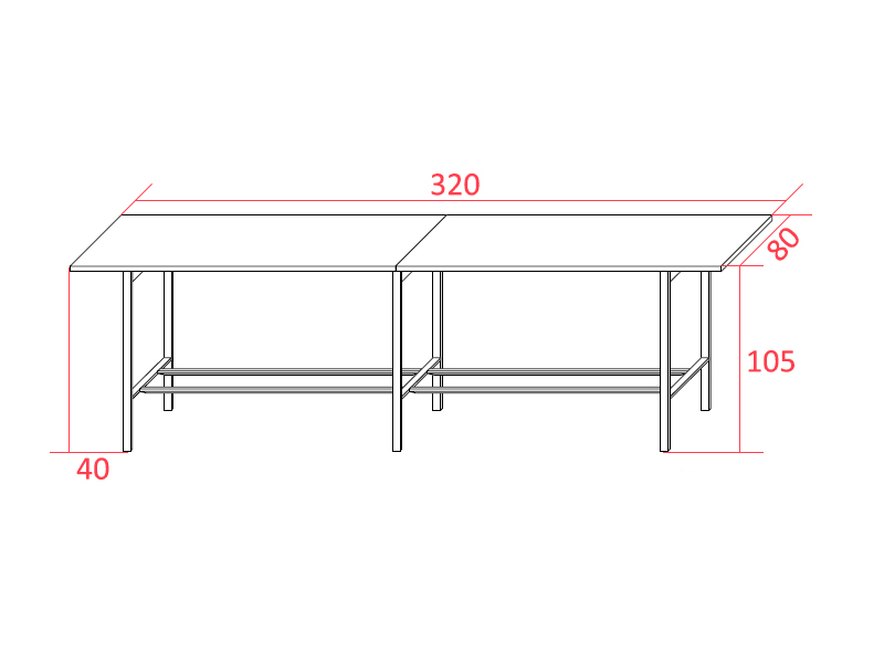105 cm de hauteur. Son plateau est en bois mélaminé d'épaisseur 30 mm