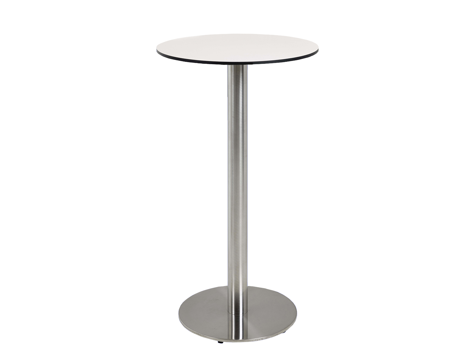 Le mange-debout Aurèle est composé d'un plateau compact rond très résistant de coloris blanc cassé avec un chant noir et d'un pied colonne en inox brossé. Ses matières qualitatives lui permettent une utilisation polyvalente comme table de travail ou de repas. Il peut occuper une zone d'attente, de détente, un espace de co-working ou un restaurant.
