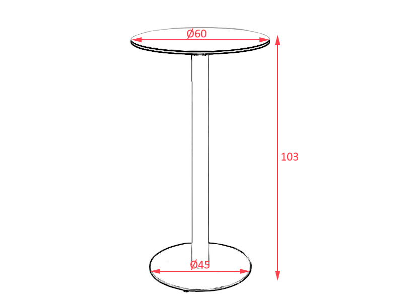 Le piètement en inox brossé a une embase de Ø45 cm.