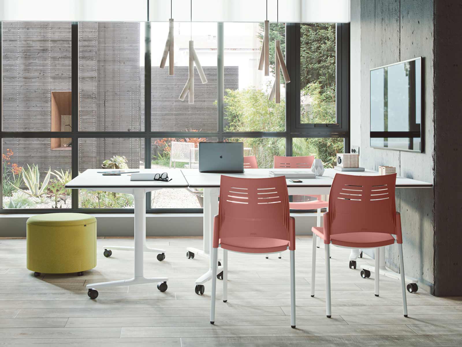La table Talent a été conçue pour des espaces multifonctionnels nécessitant une grande mobilité et ergonomie d'usage. Elle pourra en effet être facilement déplacée grâce à ses 4 roulettes de 65 mm de diamètre dont 2 avec freins. Non utilisée, elle pourra ensuite être stockée avec d'autres tables en empilement horizontal.