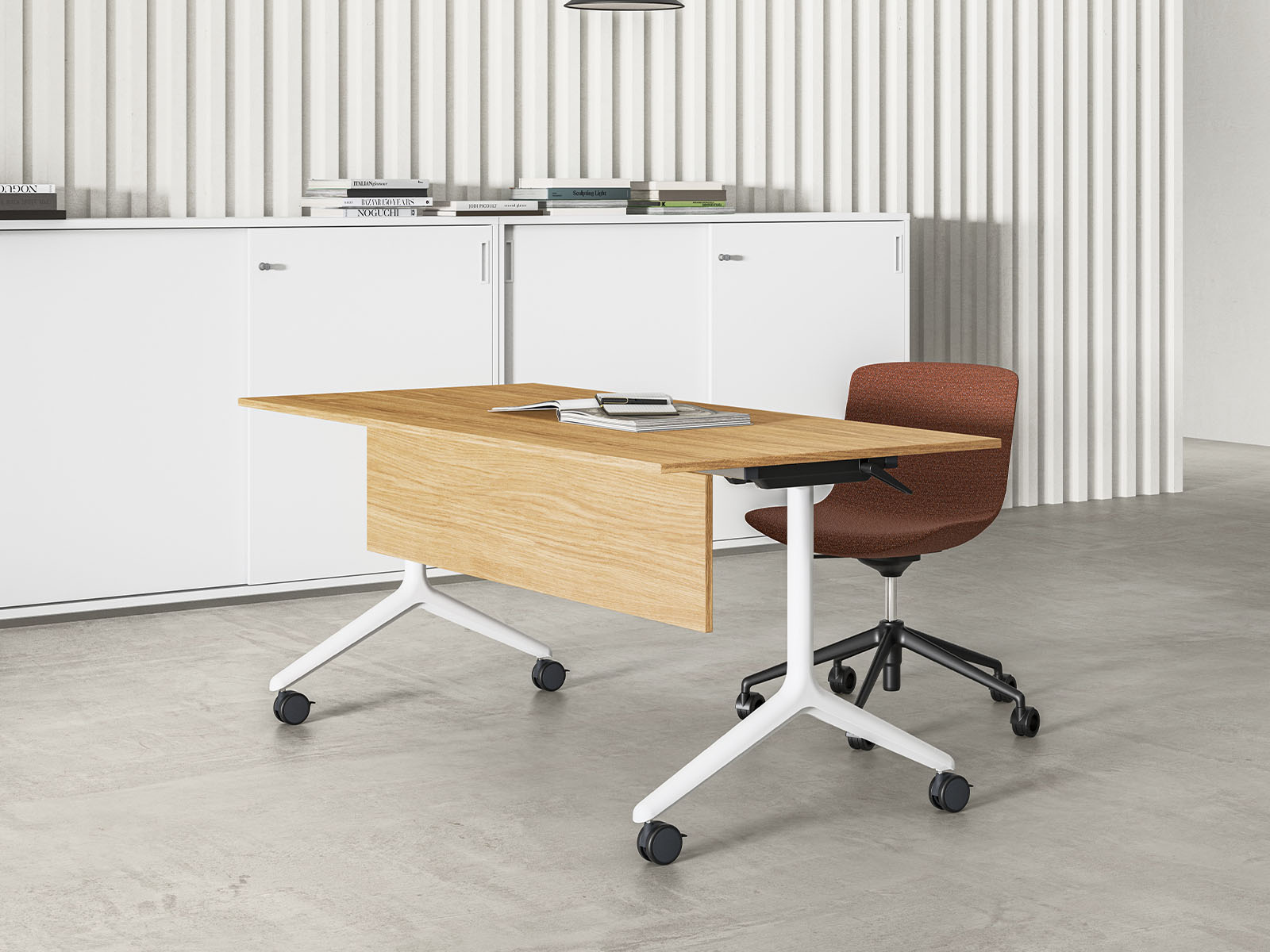 Kyte est une table rabattable qui offre une grande polyvalence dans les environnements professionnels. Fabriquée en Italie par DVO, elle se déploie et se range en quelques secondes, ce qui permet d’optimiser rapidement l’espace disponible. Conçue avec des matériaux robustes, elle est disponible dans un large choix de finitions et dimensions.
