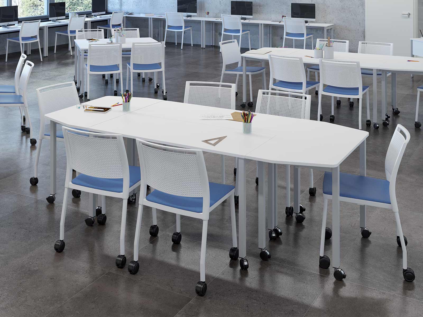 Class est une table polyvalente qui peut servir de table de travail, de formation, de conférence, de petit bureau d'appoint, ou de grande table de réunion lorsque l'on combine plusieurs unités. Ses roulettes permettent de la déplacer rapidement et facilement. Class est idéale pour les environnements ayant besoin d'un aménagement flexible : milieu scolaire, centres de formations, salles polyvalentes, etc.