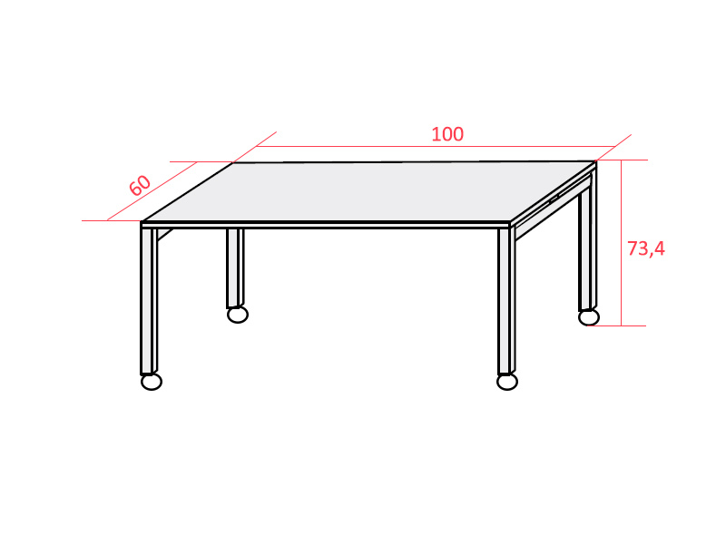 Le piètement métallique a une section carrée de 40x40 mm. Il est relié par des traverses et une poutre autoporteuse placée sous le plateau pour garantir une rigidité exemplaire. Le pied est proposé en blanc polaire et gris argent. Il est équipé de roulettes de 60 mm dont 2 avec frein.