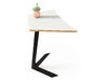 Le plateau en stratifié mesure 17 mm d'épaisseur. Il est de forme trapézoïdale légèrement concave pour plus d'ergonomie. Il mesure 47,5 cm de largeur par 29,5 cm de profondeur et se situe à 67 cm du sol. La tablette est disponible en 4 coloris : fusain, pure, cerise et pétrole. Le chant de la table est chanfreiné en forme d'aile d'avion. Il est en bois multiplis.