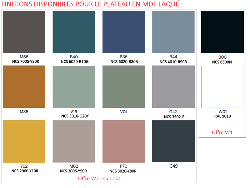 Les coloris laqués en couleur sont plus chers que les coloris blanc et noir.