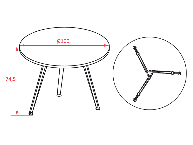 Les pieds sont équipés de niveleurs en aluminium injecté, fonte chromée et semelle antidérapante.