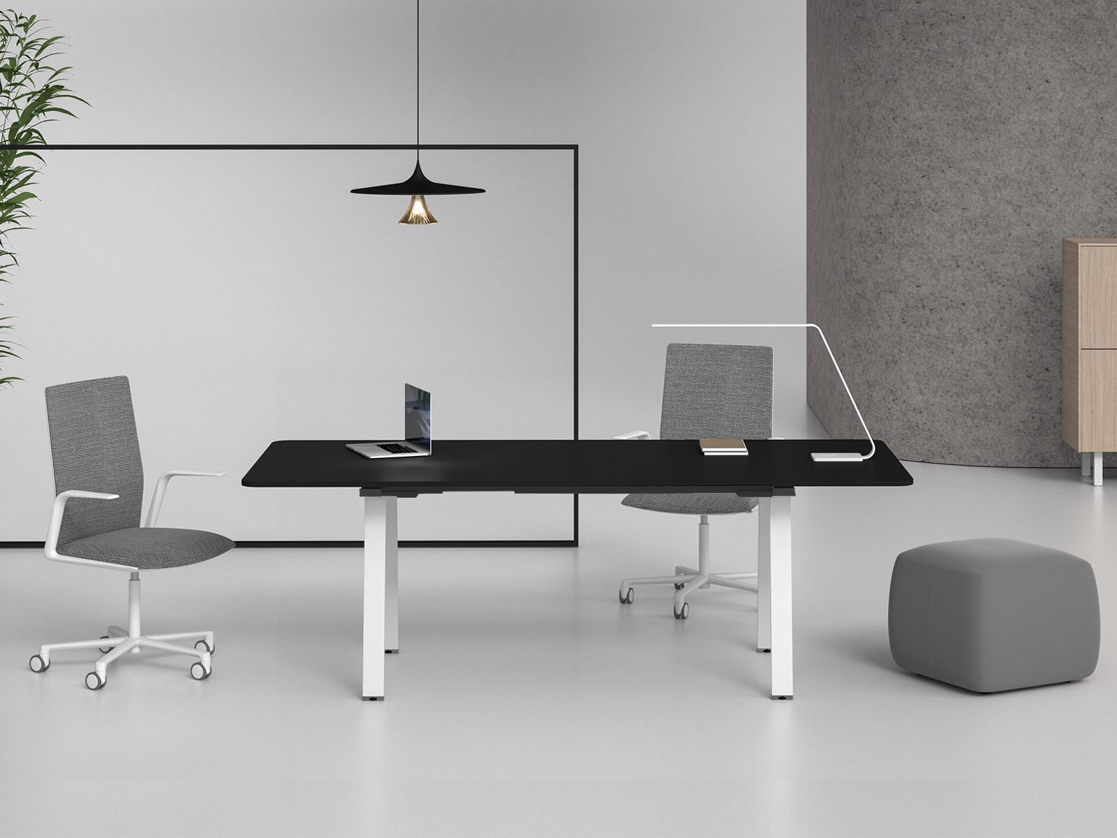 Découvrez la nouvelle version de la table de réunion Gradia Plus : une version XS, d'un faible encombrement, pouvant s'insérer dans des espaces restreints. La table est disponible en 2 largeurs (180 et 200 cm) et 2 profondeurs (80 et 100 cm). Une trappe passe-câbles pourra être installée au centre de la table afin de faire passer vos câbles à travers le plan de travail. La trappe est de coloris blanc, comme le piètement, et pourra s'ouvrir des 2 côtés de la table.