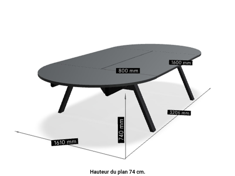 Placées en extrémité de plateau, les extensions augmentent la surface utile pour l’accueil, les réunions informelles ou le travail ponctuel, tout en renforçant la dynamique visuelle de l’ensemble. Elles sont parfaitement intégrées au design ovale de la table.