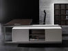 11 finitions dont plusieurs finitions effet marbre. Elle repose sur un piètement raffiné au design original en acier laqué noir mat.